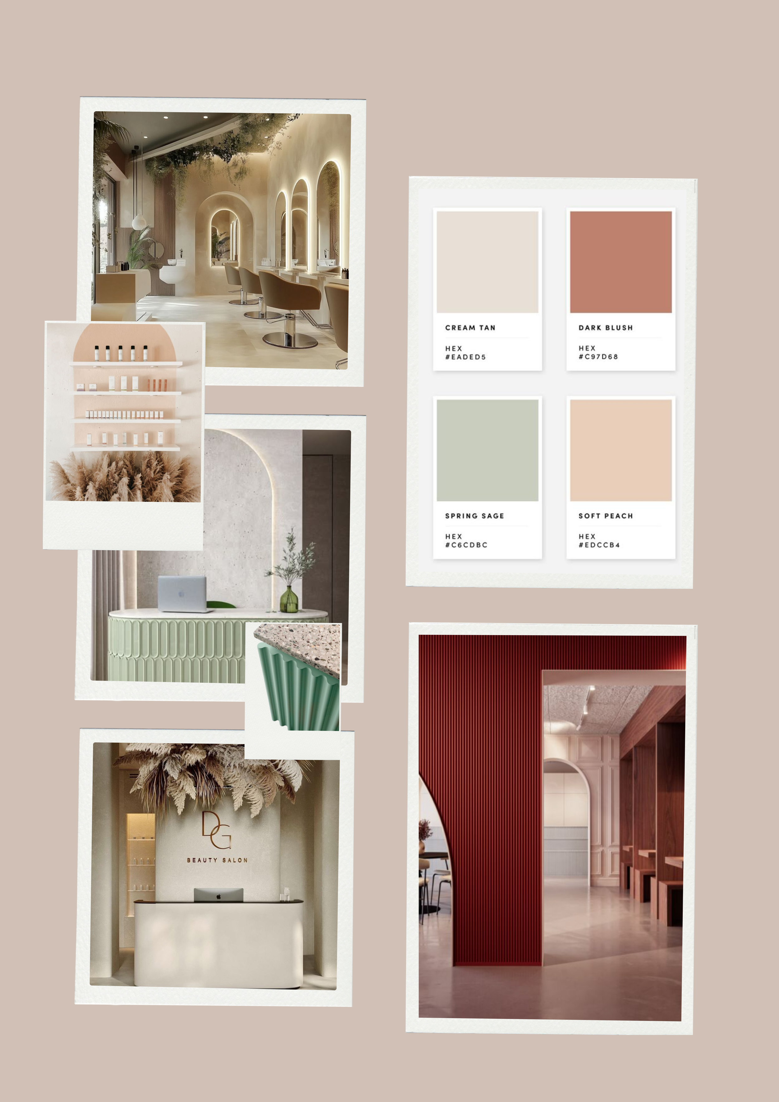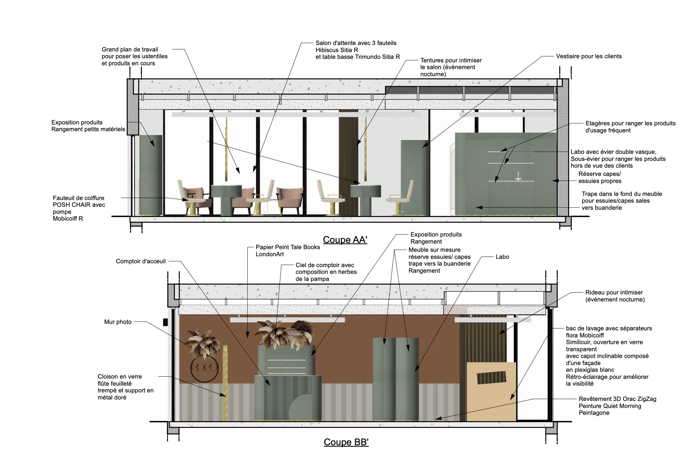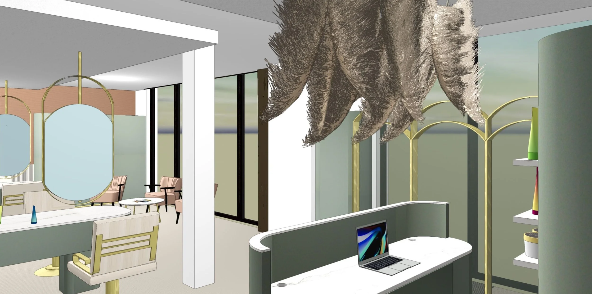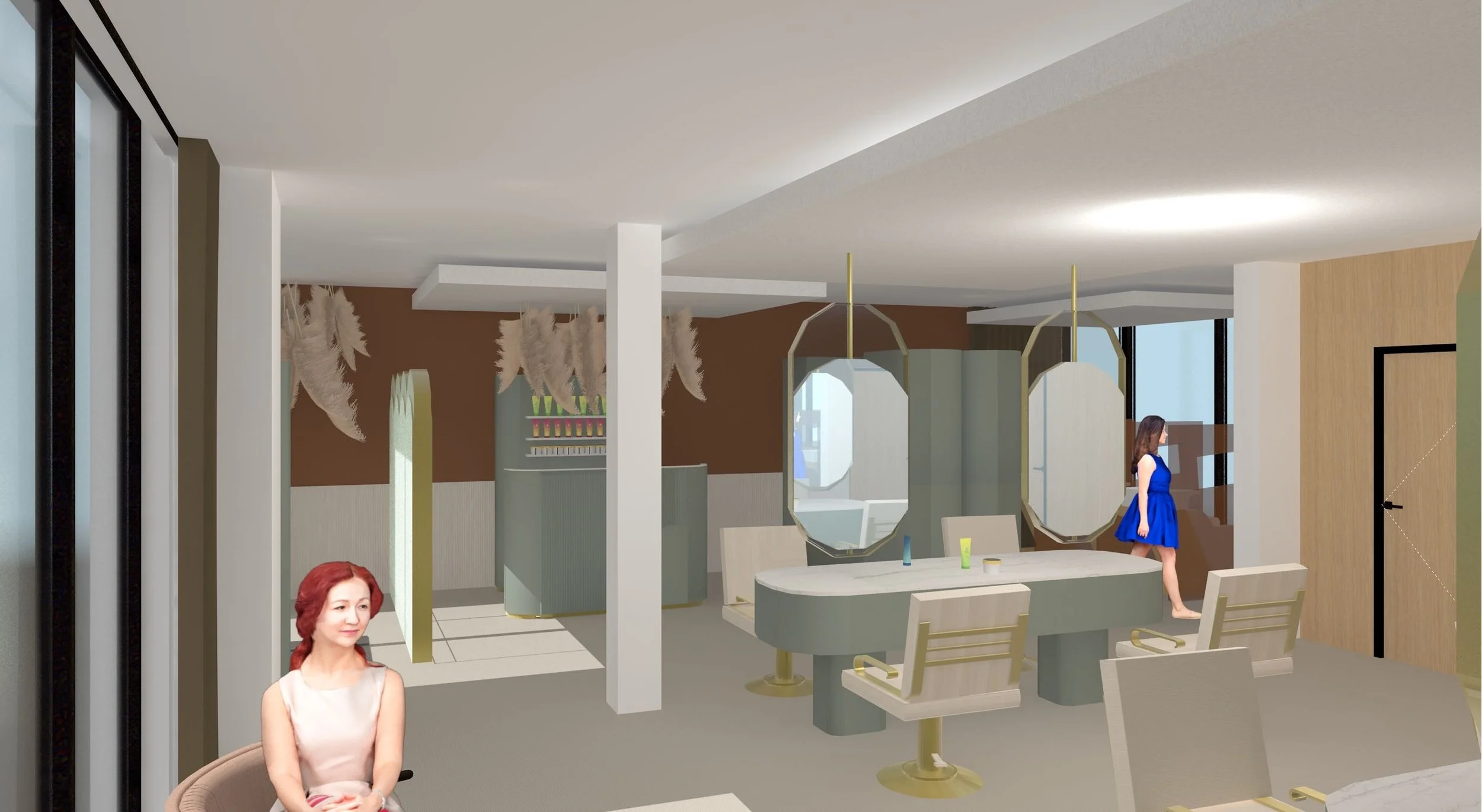 Chaque recoin murmure des histoires de glamour et de fonctionnalité. Lignes épurées et arrondies, des couleurs douces et cet éclat incomparable du doré. Ce n'est pas seulement un salon de coiffure, c'est un lieu qui se situe à l'intersection du luxe et de la praticité!