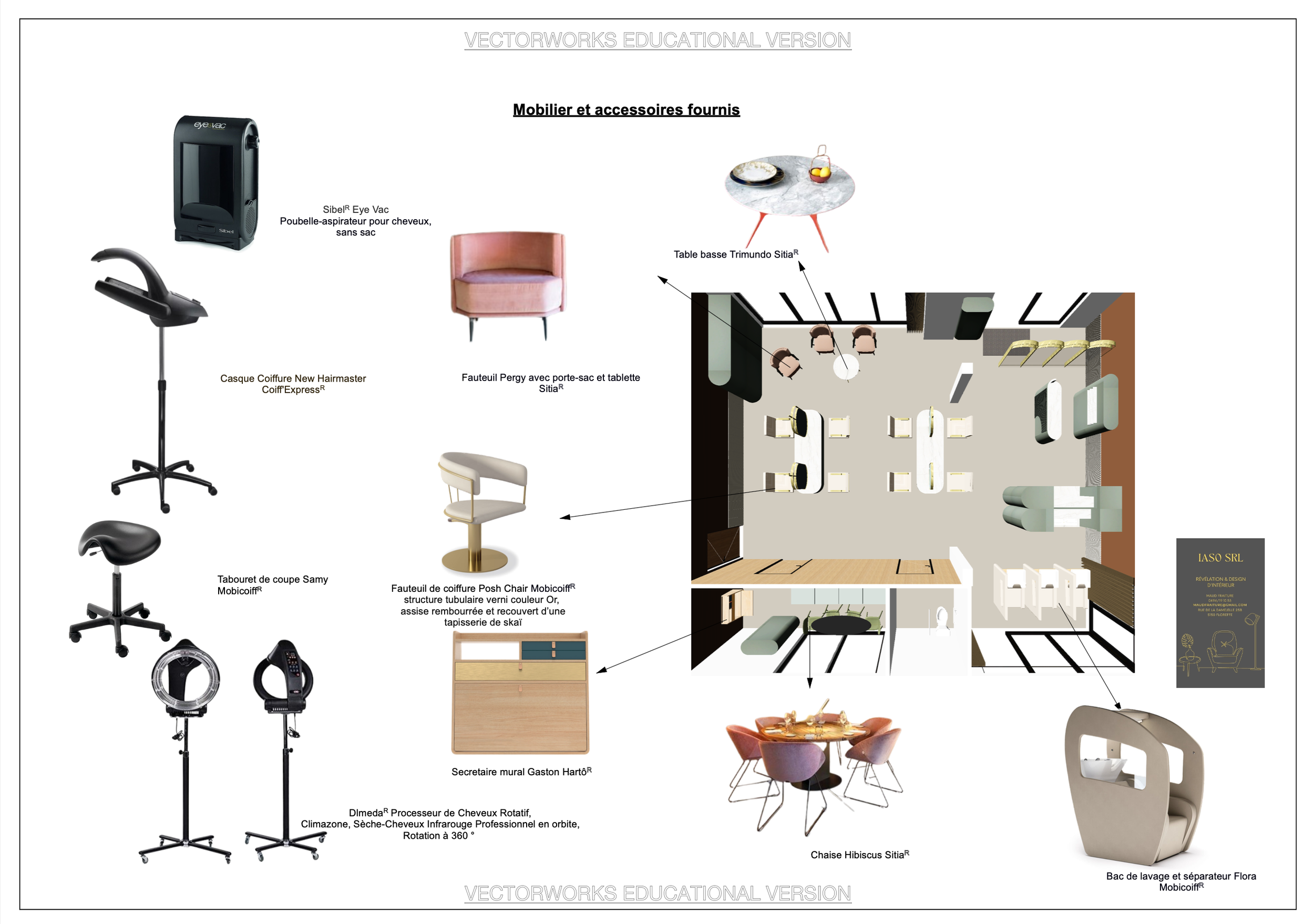 • Liste du mobilier/ des objets de décoration à garder/restaurer et/ou à acheter avec références, lien vers sites web,
